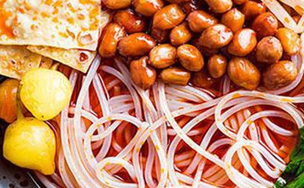桂林米粉在米粉界得天獨厚的“霸主”地位。而桂林米粉的原主義吃法其實是干撈制法,澆頭也遠沒有肥腸、排骨、魚丸這么花哨,常見的反而是鍋燒、脆皮、炸黃豆干拌,一齊混上就算大功告成。可謂人間有味是清歡。